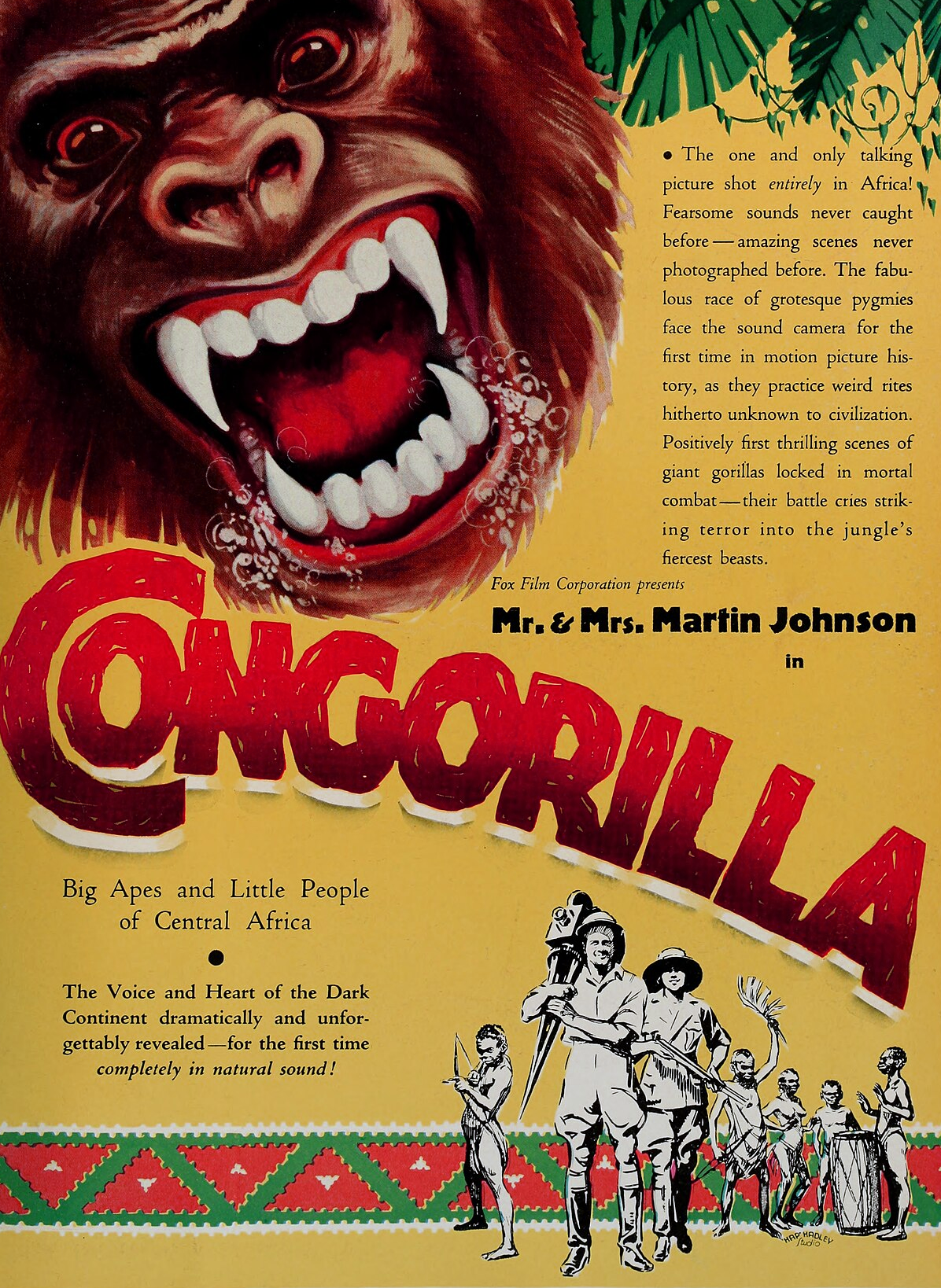 But even if kong never entered Japanese in the way Miyamoto seemed to think, as a generic noun free from its associations with the movie King Kong, there are some senses in which it did disconnect, even if it remained a proper noun. For one thing, predating even King Kong is the 1932 ethnographic documentary Congorilla. Despite what the title and poster might imply, it’s more remembered today for its depiction of a pygmy tribe living in the Congo Basin, though it does also feature gorillas.