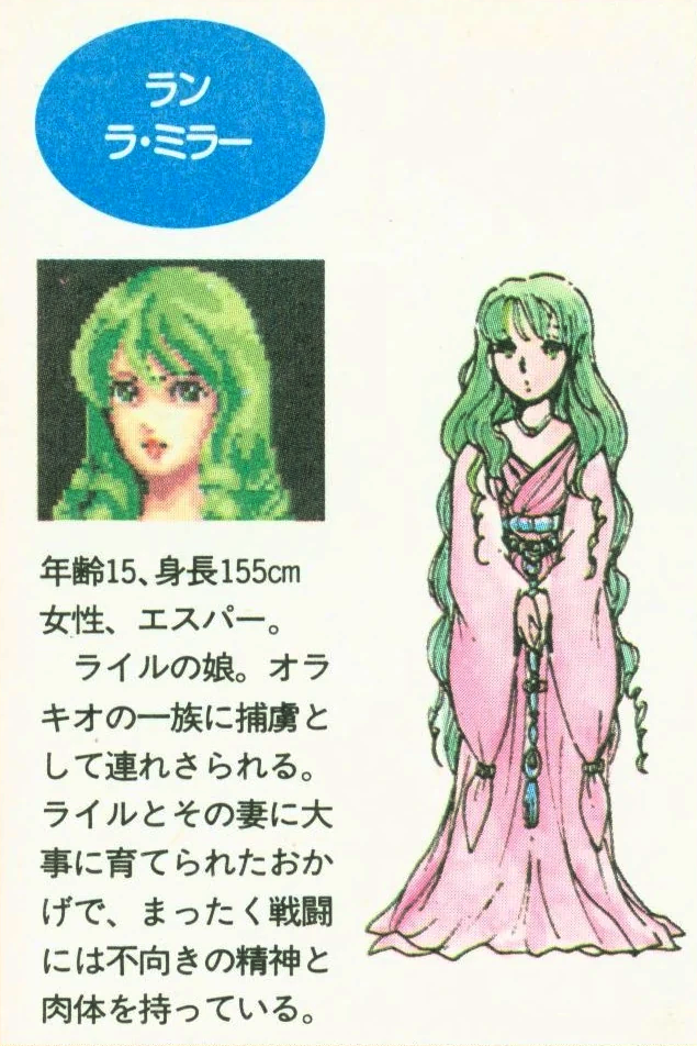 Meet Thea, one of many Espers appearing in the Phantasy Star series. (Note the katakana “エスパー” appearing in the second line.)