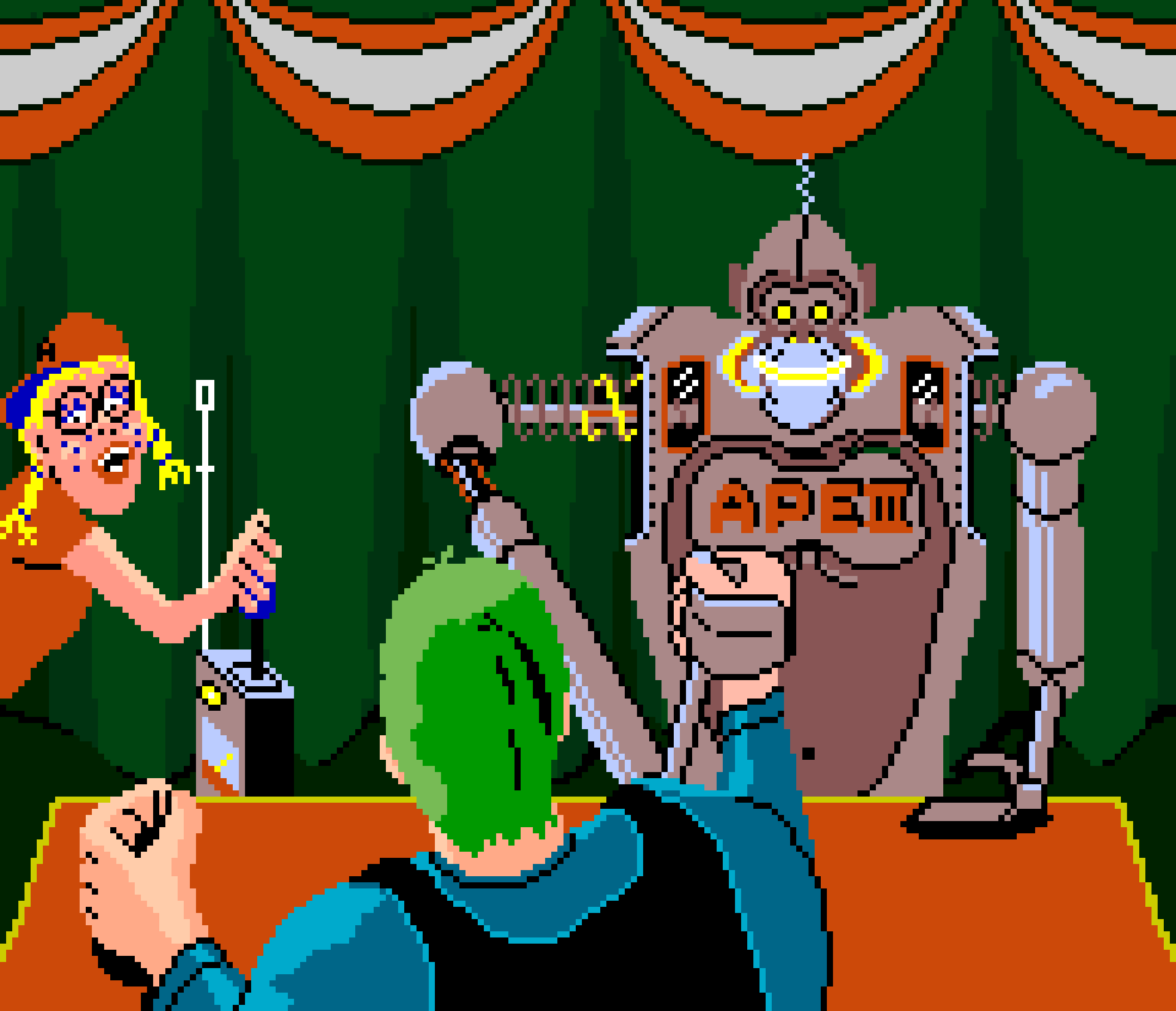 I’ve seen that some people see Alice, a nerdy science girl who has programmed an ape robot to arm wrestle, as being a kind of antecedent to Penny from WarioWare.