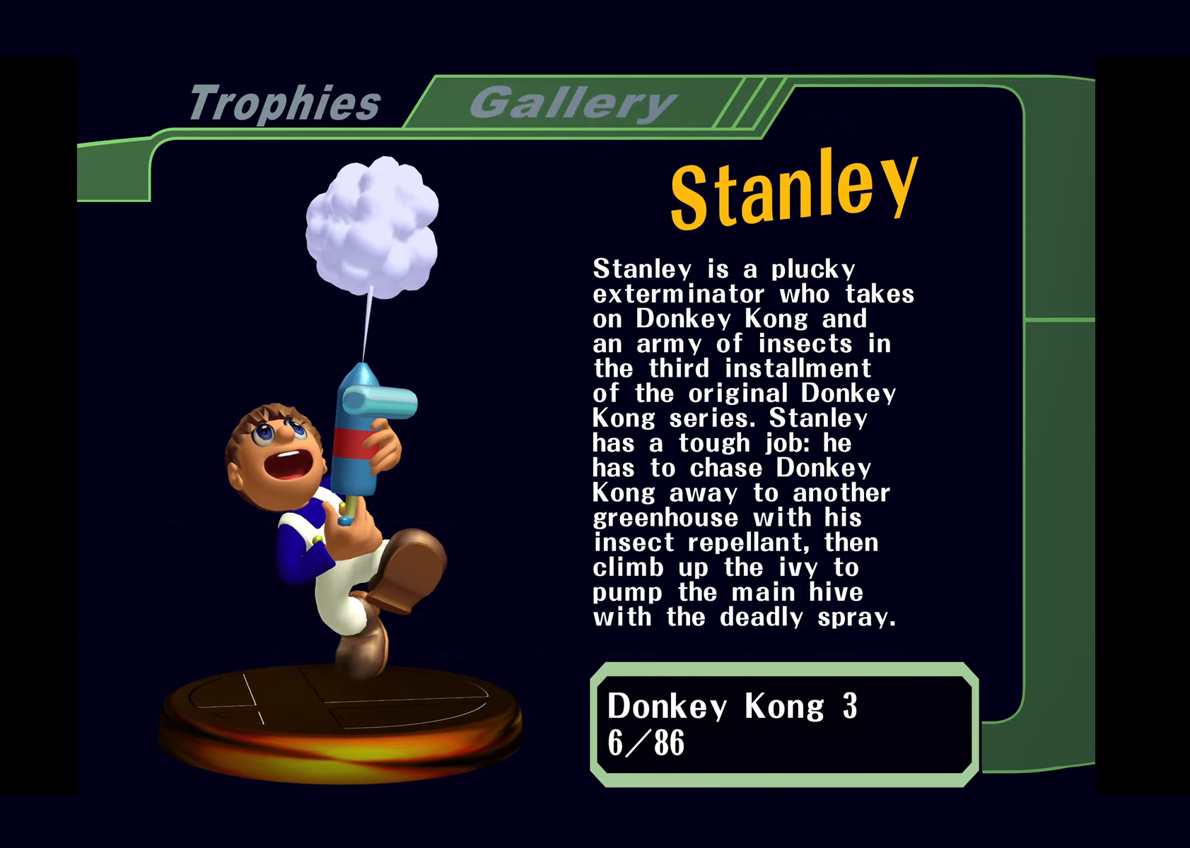 On the other hand, Stanley’s trophy in Smash Bros. Melee lists his first appearance as being Donkey Kong 3 and not Green House, but then again the trophy bios aren’t always 100 percent accurate.