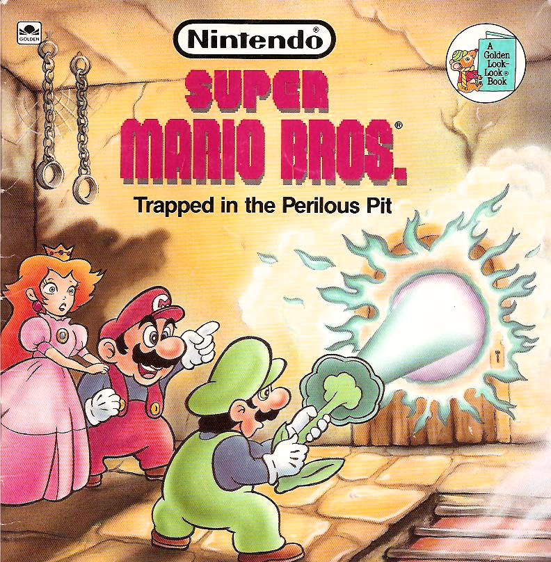 For me, I think I first became aware of this allegedly true thing with a Super Mario-themed book I picked up at my school book fair in second grade: Super Mario Bros.: Trapped in the Perilous Pit. Looking at the cover now, I see that this was published under the Golden Book umbrella, but as I kid, I just assumed the presence of the Nintendo logo as well as the Super Mario Bros. logo meant that this was an endorsed, verified depiction of the universe that Mario and Luigi lived in.