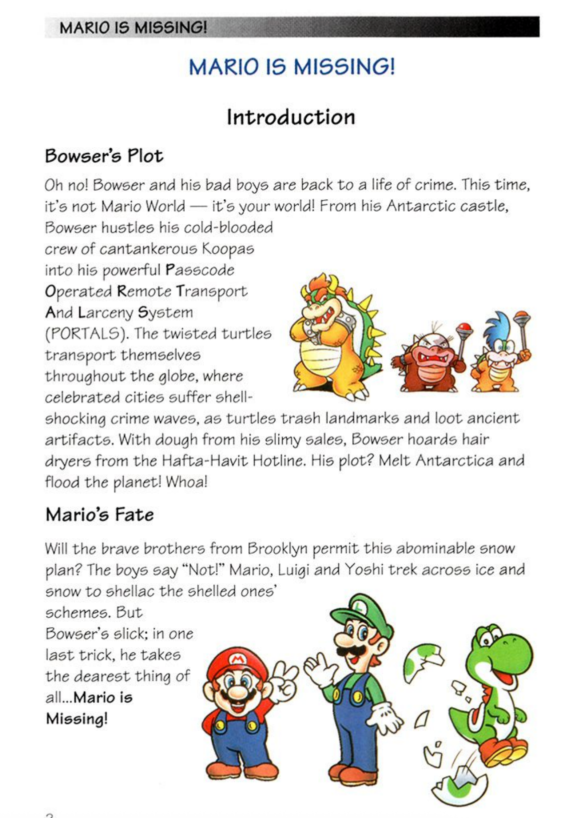 You can read the whole thing at the website Lemmy’s Land, which I am surprised and impressed still exists. Spoiler: Mario and Luigi learn a lesson about teamwork. The very first page, however, explains that the brothers arrived in the Mushroom Kingdom via the sewers of Brooklyn, New York, specifically.
