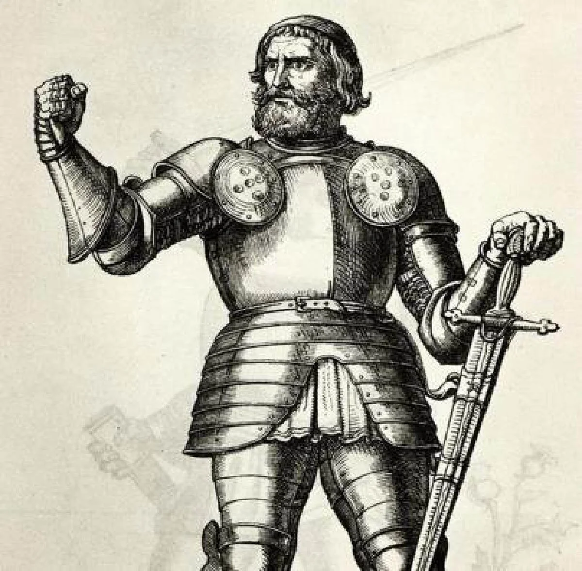 Gottfried “Götz” von Berlichingen, also known as Götz of the Iron Hand, was born around 1480 in Germany. He lived to fight, and served in various military campaigns spanning nearly fifty years. In 1504, he lost his right hand during a siege, although I have to admit he lost it in the most badass way possible: a cannonball struck his sword with such strength that the blade cleaved it clean off. Such an injury would end most people's military careers right then and there, but ol’ Götz was made of sterner stuff — figuratively but very quickly literally, as he commissioned the creation of metal prosthetics. The first was simpler, but the second was the device that gave Götz his nickname: a whole gauntlet that covered his arm. According to a short article in a 2011 issue of Wired, where I first learned about this, the prosthetic had articulated fingers controlled by gears that, when locked into place, could allow Götz to wield a weapon but also grip a quill pen. He fought for another four decades, dying in 1562.