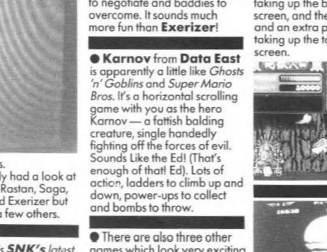 And it takes off from there, likely not because of Karnov or Computer & Video Games magazine, I’m guessing, but more that the Japanese usage just caught on more and more among English-speaking gamers. I suppose that could have happened as a result of increasing contact between western gamers and their Japanese counterparts, but I’d think it more likely that English-speaking gamers picked it up directly from a video game instead — either “gently” localized or not localized at all because the original Japanese version used English text. The earliest example I could think of is Altered Beast, Sega’s 1988 beat ’em up and gay transformation fetish primer, which doesn’t show that text on screen but does feature a voice sample that intones “POWER UP!” every time you do so.